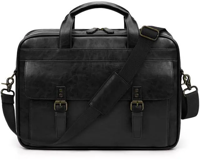 Large Capacity: This laptop briefcase has ample space to store all items. One independent padded laptop compartment can protect a 16-inch laptop and iPad from accidental collisions. The main compartment is used to store files, books, etc. There is one inner zipper pocket for storing valuable items. In addition, there is 1 front compartment, which contains 1 large open compartment, 2 slip pockets, 6 card slots, and 1 pen leather holder strap, for storing the items you want to carry easily