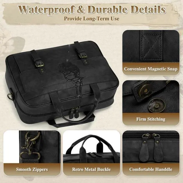 Waterproof Retro Laptop Briefcase: This retro laptop briefcase is made of high-quality PU leather, featuring fine texture and natural luster. It feels soft yet firm, making daily maintenance more worry-free. Durable brass hardware ensures lasting reliability, and thick padding protects your laptop from impact. It can hold a 16-inch laptop and is perfect for urban commuters who need a waterproof leather men's laptop bag. It can seamlessly transition to office meetings and rainy day trips