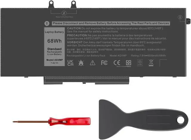 4GVMP Battery for Dell - Asuncell laptop computer battery is made of Li-ion, 4-cells, 7.6V, 68Wh capacity. 100% Brand new. Up to 500 recharge cycles over the life of the battery.