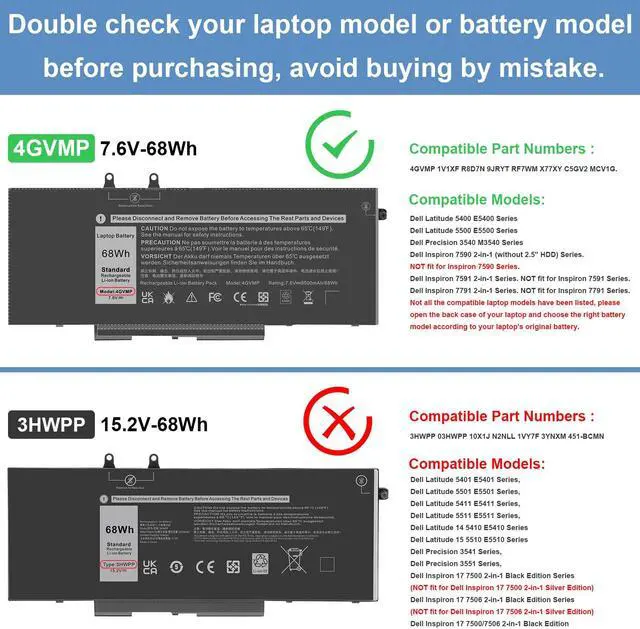 Compatible Models - This 4GVMP laptop battery fits for Dell Latitude 5400 E5400 5410 E5410 5500 E5500 5510 E5510 Series, Precision 3540 M3540 Series, for Inspion 7590 7591 7791 2-in-1 Series.