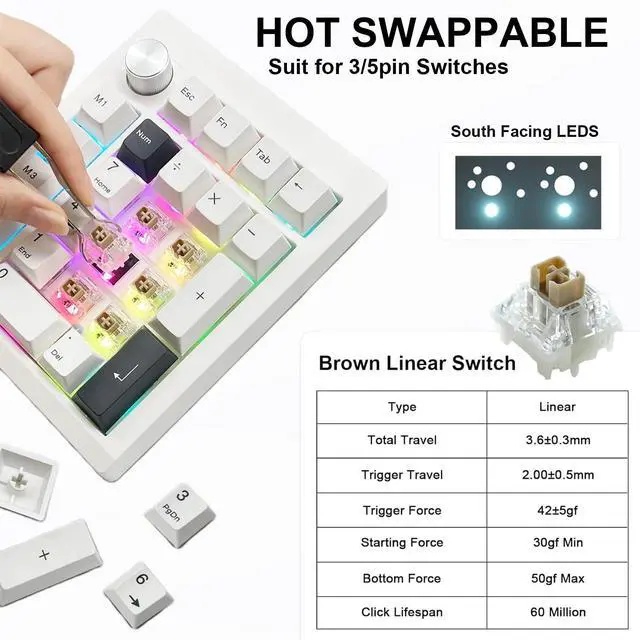 Multi-function Knob Design Numeric Keypads: Multi-functional knobs provide refined control. Easily turn the knob to control the volume. Saving valuable time for work and games! Well-tuned stabiliser ensures keystroke consistency and satisfaction. zuoya gmk26 numpad let's say goodbye to an unstable and inconsistent typing experience