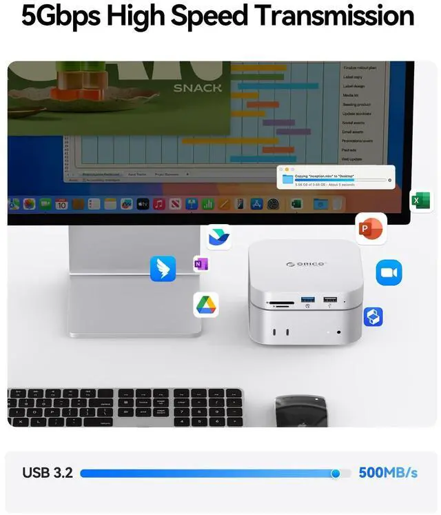 Perfect Match for Mac Mini M4 Sleek, Seamless, Smart. Crafted with a premium aluminum finish that mirrors your Mac Mini M4, this stand hub blends in beautifully while delivering expanded functionality. The design helps reduce Wi-Fi interferenceensuring better wireless performance and a clutter-free workflow.