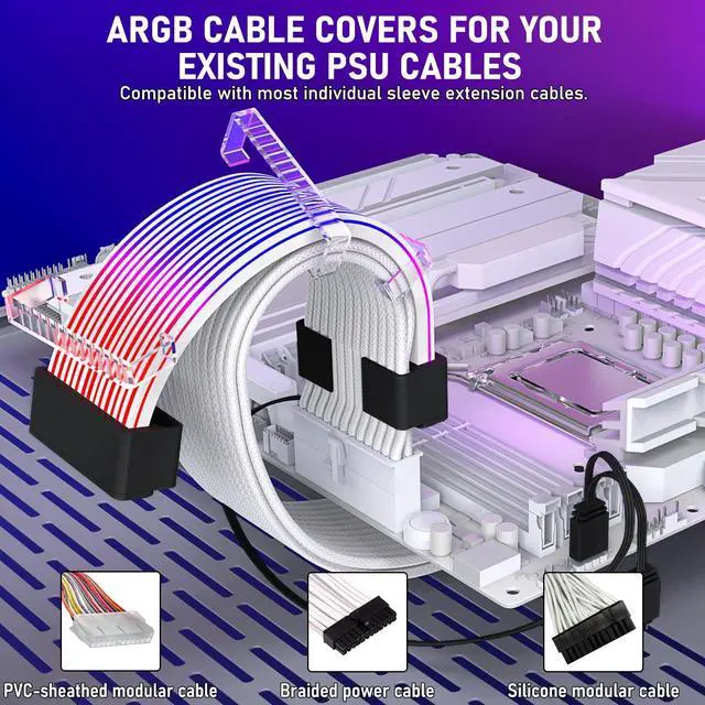 Illuminate Your PC AestheticsThe 24-pin motherboard cable is equipped with 80 LED beads, and the 8-pin/16-pin GPU cable features 81 LED beads. These ARGB PSU extension cables, crafted from high-toughness silicone material, infuse dynamic light effects into your PC build, making hardware aesthetics go beyond just performance.