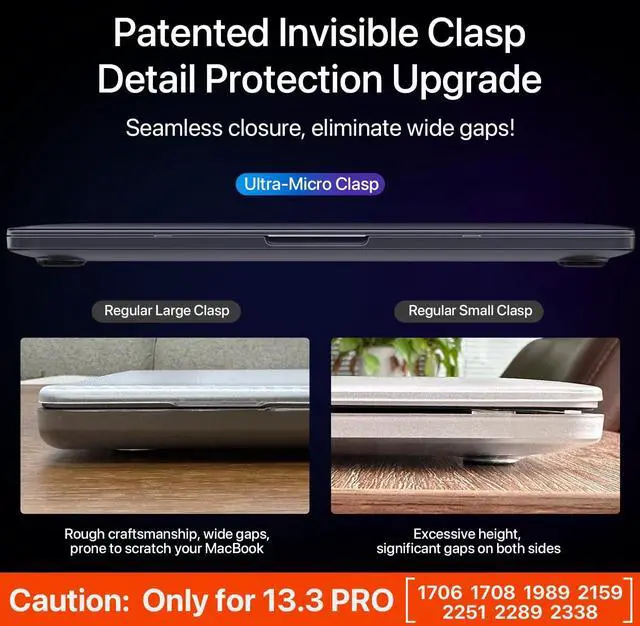 Precise Cutouts, Seamless Fit: Designed for Macbook Pro 13 inch Case, this case is molded according to original Macbook using micro 3D cutting tech. It fits snugly like a second skin, allows easy access to all ports and ensures smooth opening and closing