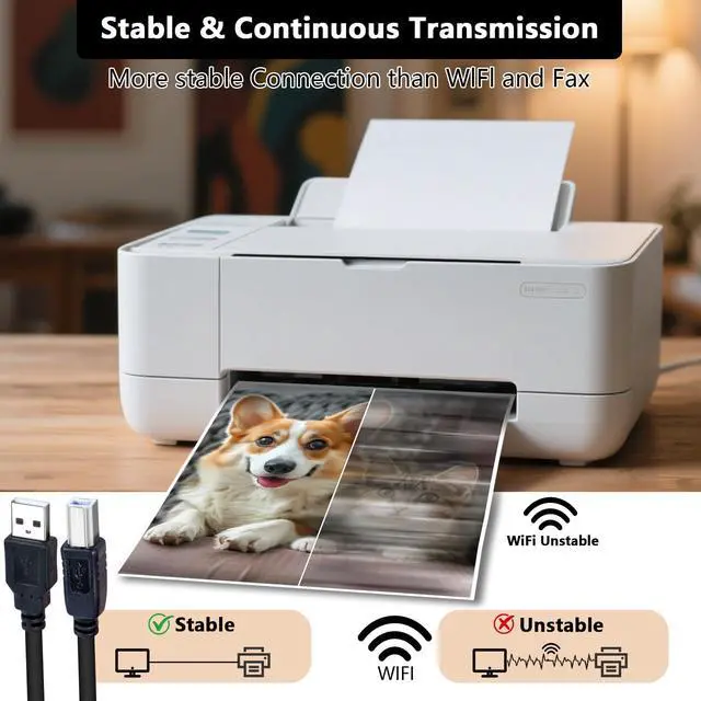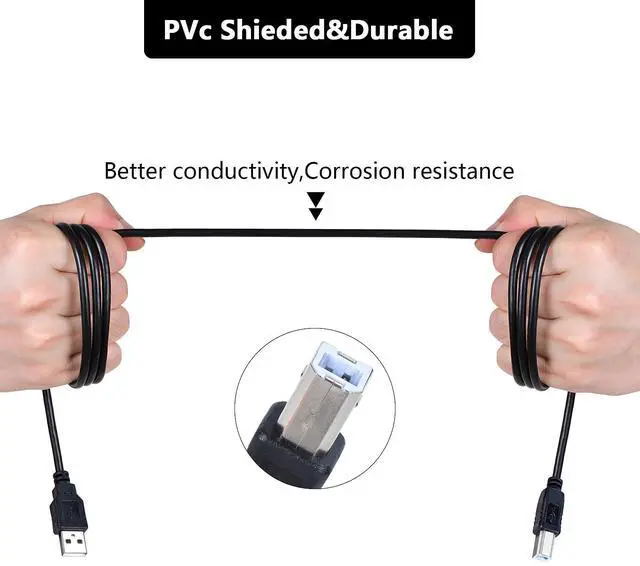 Data Transfer: Up to 480 Mbps transfers data speed for USB 2.0 devices, the printer cable is backwards compliant with full-speed USB 1.1 and low-speed USB 1.0.