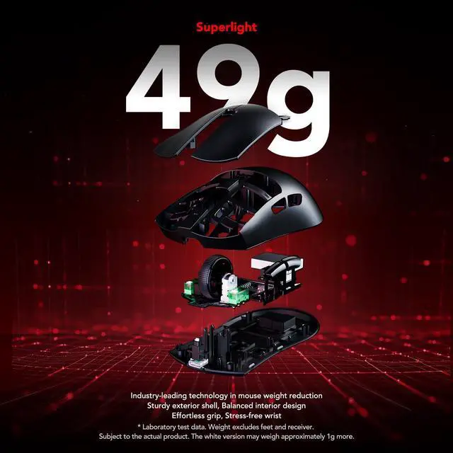 [Ultra-Lightweight 46g Engineered for Speed] A precision-engineered shell and optimized internal structure reduce weight to just 46g, enhancing flick speed, reaction time, and control. Perfect for extended sessions where fatigue is the enemy and every gram counts