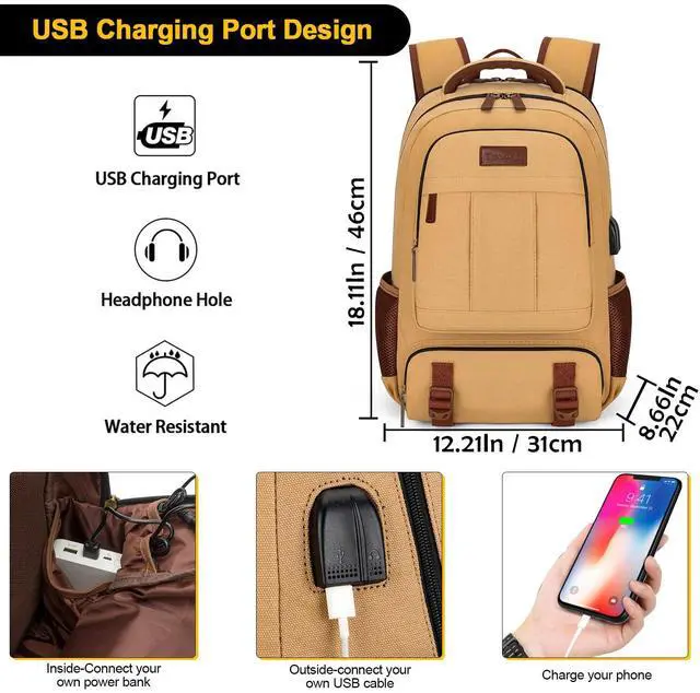 [USB and Headphone Port] This backpack has external USB port with built-in charging cable offers convenient charging your cellphone by connecting your own power bank. The headphone port outside gives easy access to Earphone usage as well. (battery pack NOT included).