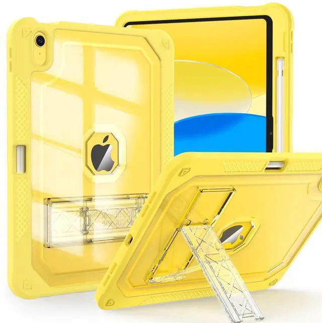 ZoneFoker Case for iPad 11-inch (A16) 2025 / iPad 10th Gen 10.9 inch 2022, Heavy Duty Shockproof Rugged Protective with Pencil Holder, 11th / 10th Translucent Cover with Kickstand Kids, Yellow
