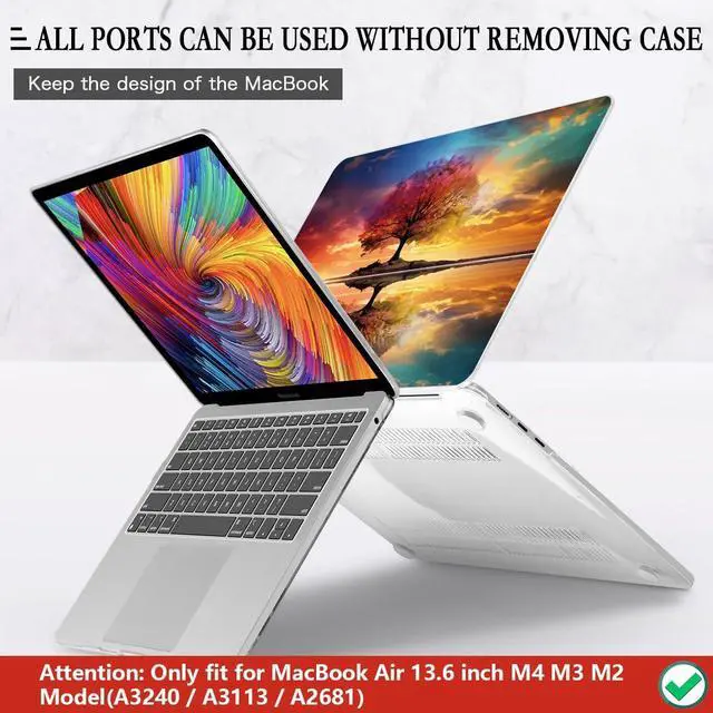 Pretty Case, Durable Material Made of plastic materials with 3D UV 4-layer process printing technology, beautiful case of individuality, Well-printed design on a plastic hard case with soft touch texture. Artistic surface of the laptop that also makes your silver /space gray/ starlight/ midnight mac book air 13.6 out of the ordinary while keep the original design. Bottom cover with vent slots to heat dissipation and 4 raised rubberized feet to keep your laptop firmly on the place.