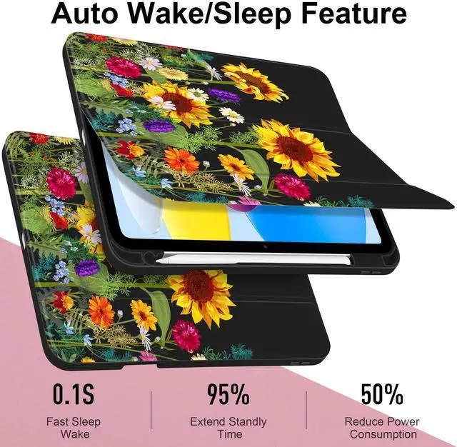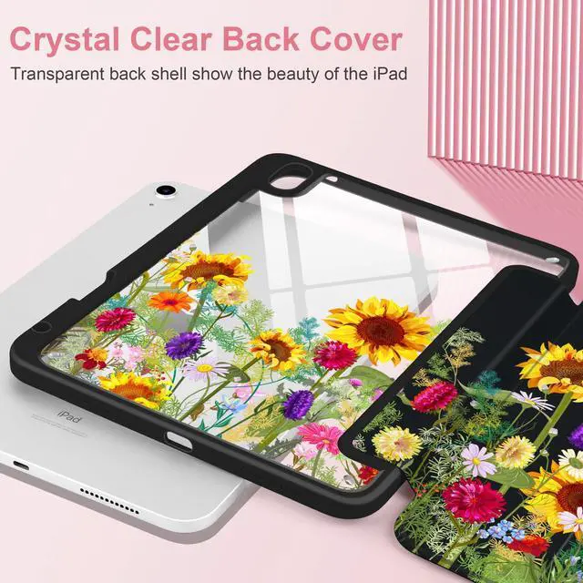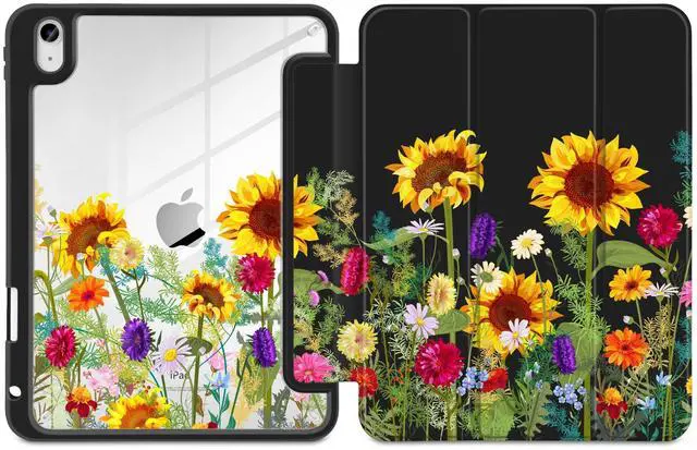 MEEgoodo Case for iPad A16 11th Generation 11 inch 2025/10th Gen 10.9 inch 2022, Cover with Transparent Acrylic Back Shell,Tablet Case with Pencil Holder+Auto Wake/Sleep+Trifold Stand, Sunflowers