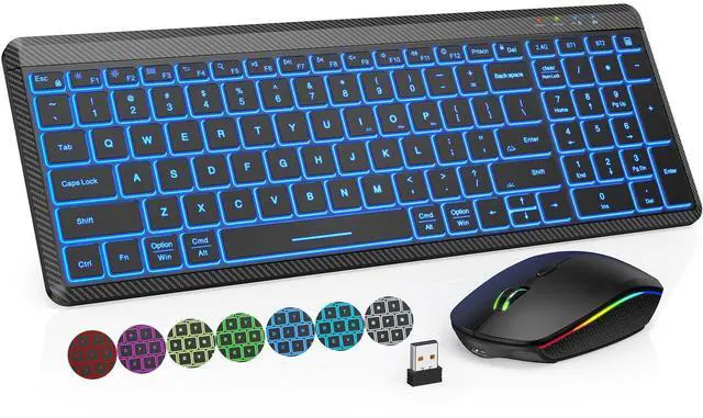 Wireless Keyboard and Mouse Bluetooth, Multi-Device Mini Keyboard, Switch up to 3 Devices, Slim Portable Travel Backlit Cordless Set, RGB Silent Mouse, for Mac, iOS, Android, Ipad (Black)