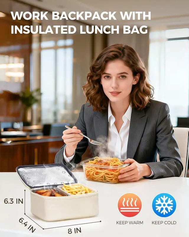 Removable Insulated Lunch Bag: Business laptop backpack includes a separate insulated lunch bag, making it easy to carry meals without needing an extra tote. The removable design keeps food organized and prevents spills inside the stylish laptop backpacks for women, while the insulated aluminum lining keeps food warm for 3 hours. Work backpack for women with lunch bag is ideal for office workers, business travelers, commuters who prefer healthy, home-packed meals
