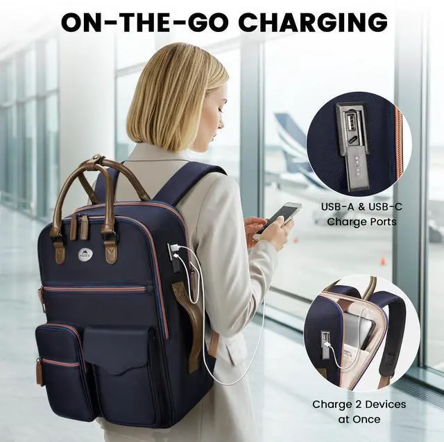 Laptop Protection & USB-C Port: Professional backpack for women featuring a padded 15.6" laptop compartment with air-cushion design for shock absorption & protection, ensures electronics safe. With both USB-A & USB-C ports, professional office backpack for women can charge 2 devices at once for convenient on-the-go charging (Charging cable & power bank not included). The thoughtful design of women's professional backpack makes it a nice choice for white-collar, senior management, professor