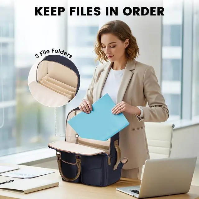 Wrinkle-free File Folder Pocket: Women laptop backpack professional features an expandable accordion file pocket with elastic band, keeping documents & folders organized. Perfect for advanced professional women who need carrying important documents during meetings, client presentations, or classroom settings. The efficient design ensures confidential materials stay wrinkle-free and readily accessible, making professional laptop backpack for women an ideal choice for office & conference ^