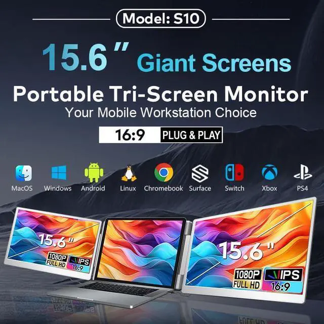 [Boost Productivity by 3X] - Instantly transform your setup into a portable triple screen extender with two extra displays. This portable screen for laptop lets you multitask across spreadsheets, design tools,and meetings simultaneouslyboosting efficiency by 300%. The laptop monitor extender supports mirror, presentation, and split-screen modes for flexibility. Lightweight and perfect for work, business travel, and offices.