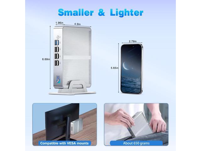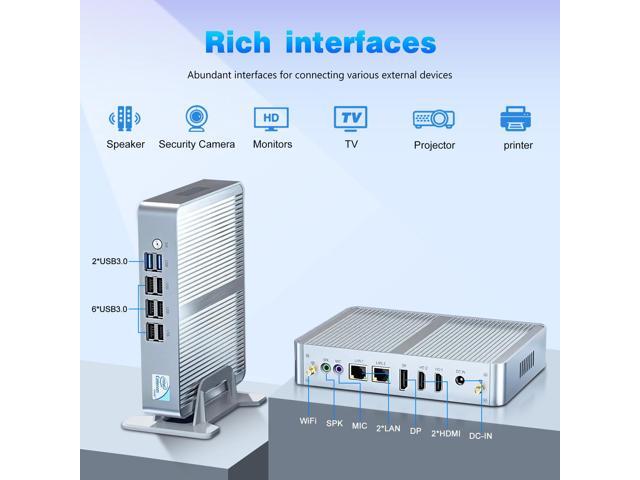 - 4K Triple Display: The fanless mini PC has 2 HDMI and 1 DP ports to support simultaneous audio and video transmission, allowing you to connect 3 screens at the same time for efficient multitasking. Supports 4K resolution and 60Hz refresh rate, connect the PC to the projector as a home theater and enjoy all kinds of entertainment, bringing you realistic visual effects