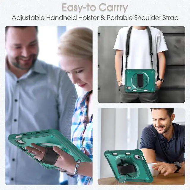 360° Rotating Hand Strap / Stand This iPad case features 360° rotatable collapsible kickstand and horizontal angles (30°, 45°, 60°) that allows you to position your iPad as you see fit, suitable for drawing, studying, working or watching a movie. The With soft handle strap is easy to grip and ideal for students, teachers, doctors and waiters.