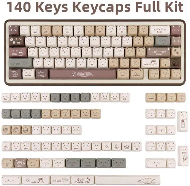 COOMICKEY Mao Profile PBT Keycaps, 140 Keys Dye Sublimation Cute Custom Keycap Set for Cherry Gateron MX Swithes Mechanical Keyboards