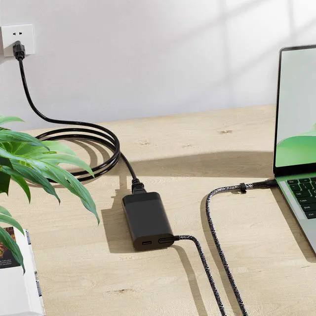 Power Specifications: AC input voltage 100 ~ 240V ~ 2A 50/60 Hz, USB-C Output 5V ~ 3A 15W, 9V~3A 27W, 12V~5A 60W, 15V~5A 75W, 20V~5A 100W (Compatible with 65W 90W), USB-A Output : 5V~2A 10W. Connector: USB-C