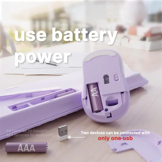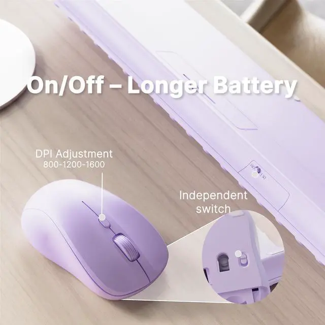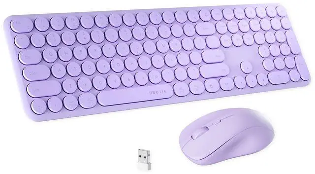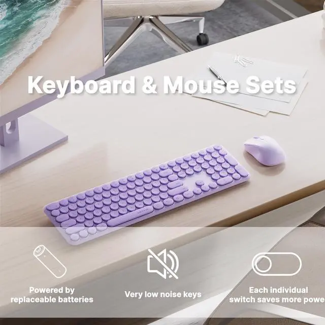 FCPLU x UBOTIE Wireless Keyboard and Mouse Combo with 110 Round Keycaps, Power Switch, and Scissor-Switch Typing Feel Ideal for Office Use (Purple)