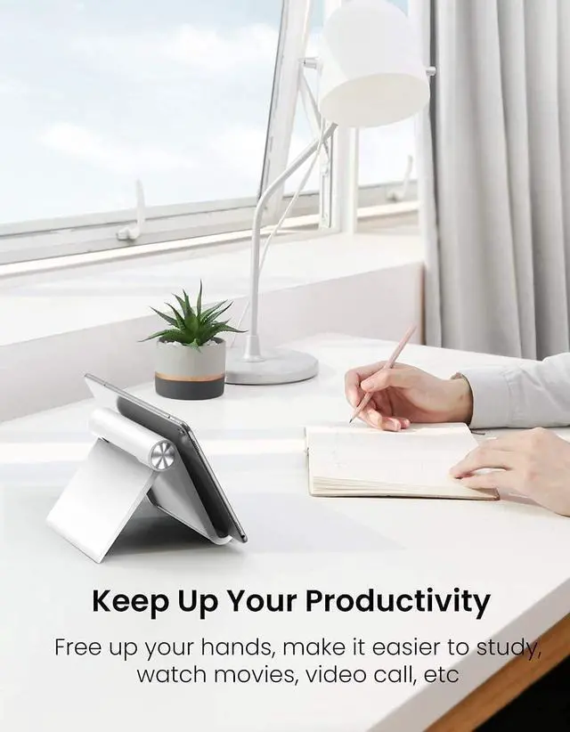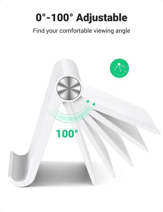 Multi-Angle Adjustable: Directly adjust to your preferred angle from 15° to 100°. UGREEN desktop stand for tablet can hold your smartphone or tablet at a comfortable angle, ideal for watching videos, reading, recording, browsing, facetime call and more.