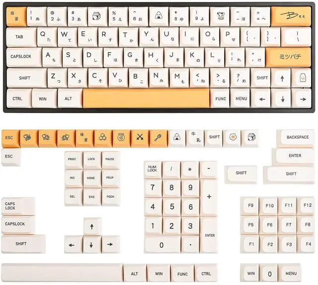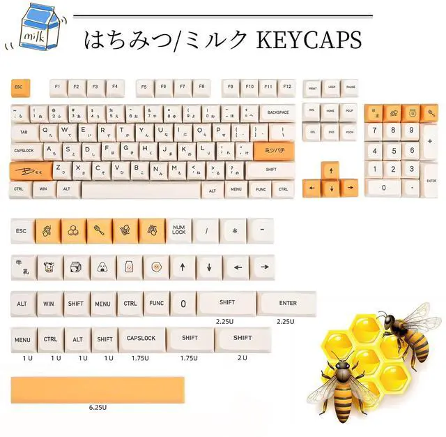 GTSP XDA Honey Milk Keycaps PBT Japanese Bee keycap 140-Key Set for Cherry MX Covers Fullsize 60% 65% 75% KeyboardXDA/Honey Milk