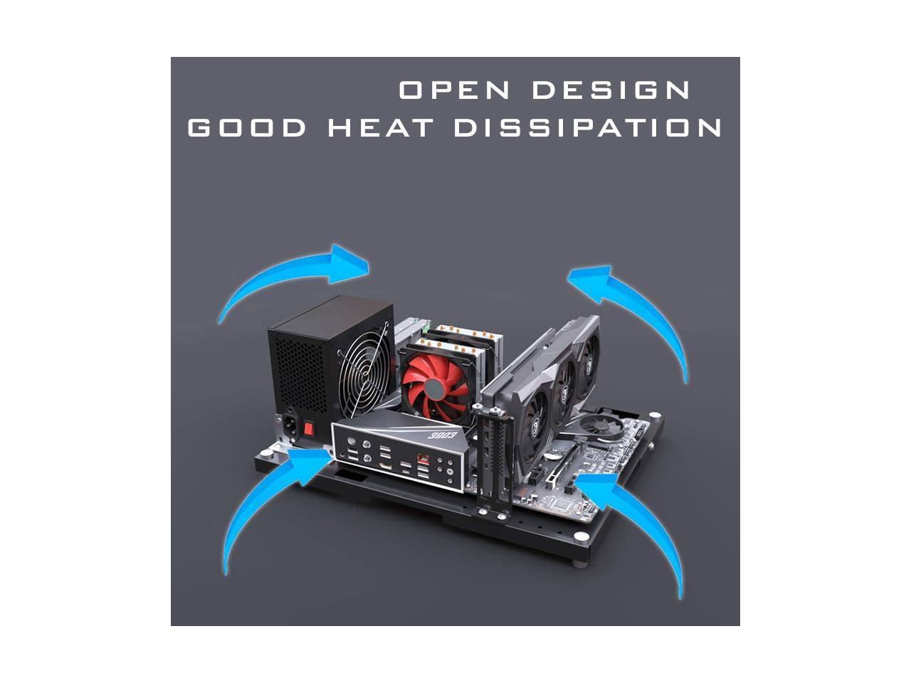 - Efficient Open Frame Design Open chassis allows excellent airflow and natural heat dissipation, helping to keep your components cool and performing at their best without the need for additional fans or water cooling.