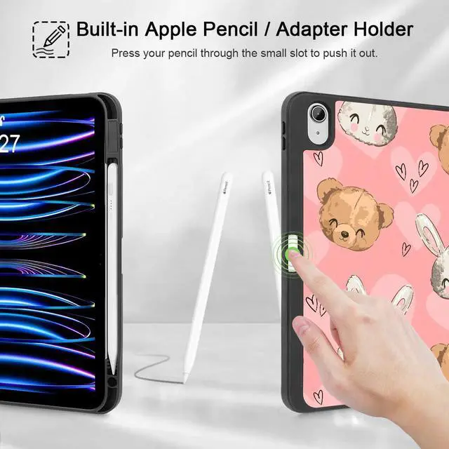 Mektron Case for iPad Air 11 inch (M3 2025 7th /M2 2024 6th), Compatible with iPad Air 10.9" (2022 5th Gen /2020 4th Gen) Tablet Cover Buit in Pencil Holder with Auto Wake/Sleep, Cute Bunny Bear