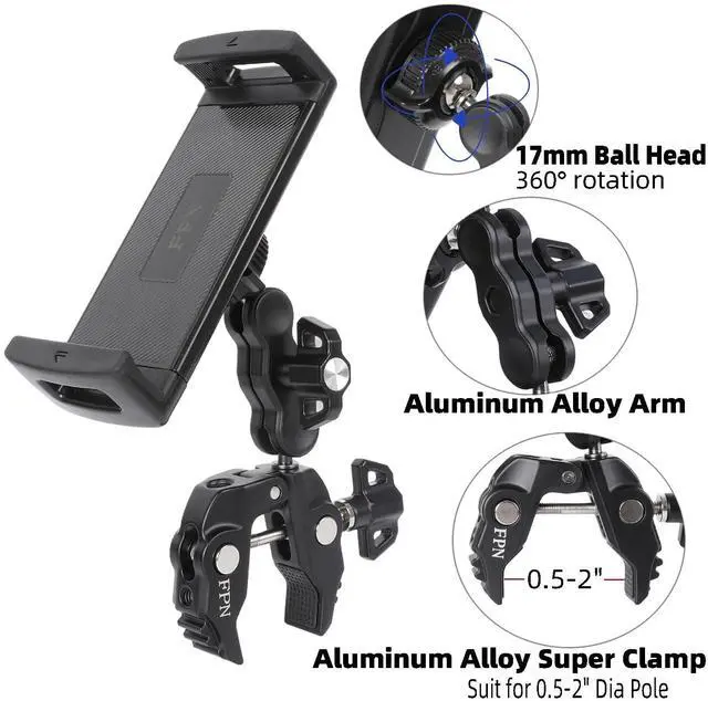 Versatile Heavy-Duty Clamp: Crafted from aircraft-grade aluminum alloy, the super clamp and flexible magic arm securely attach to cylindrical objects (0.5"-2" diameter). Perfect for treadmills, spin bikes, strollers, golf carts, wheelchairs, mic stands, elliptical machines, and shopping carts. A must-have for workouts, travel, or hands-free entertainment!