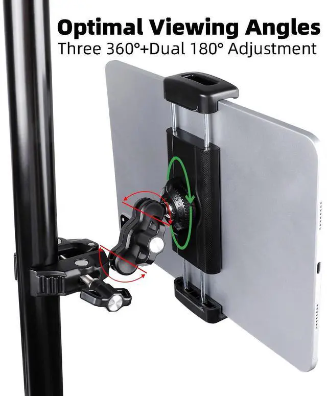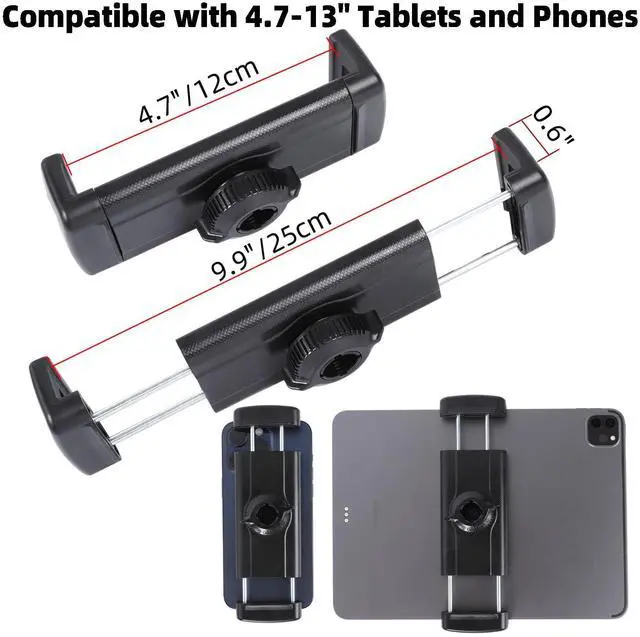 FPN Tablet Holder for Microphone Stand/Treadmill/Spin Bike/Stroller/Golf Cart/Handlebar/Stationary Bike, Phone iPad Holder Mount for iPad Pro 12.9, Galaxy Tabs, iPhone( 4.7 -13)