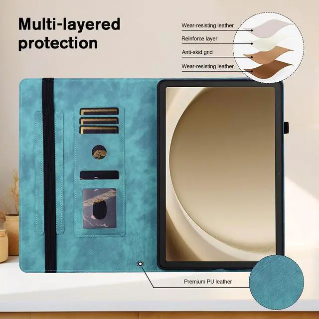 [Multi-card slot] Built-in card slots can store your business cards, bank cards, notes, bills or other personal belongs while on the go. There is a pen sleeve on the side of the protective cover for placing the pen.