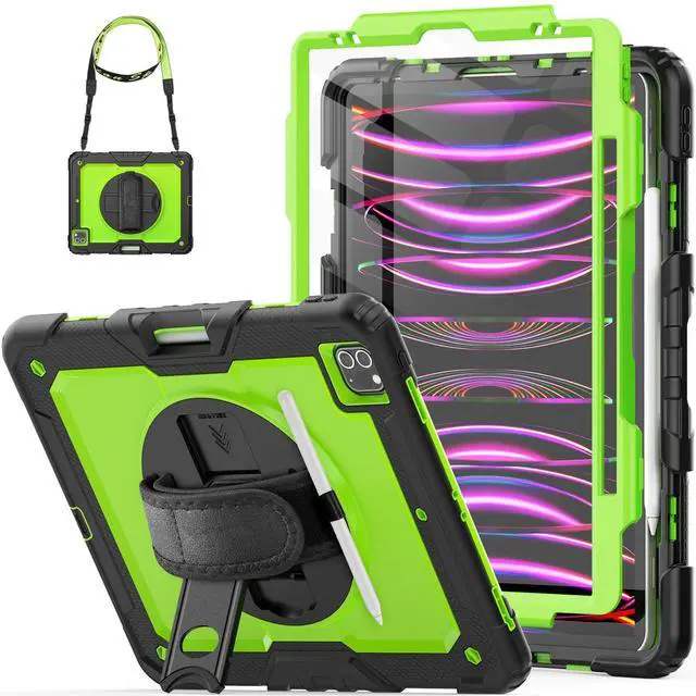 HXCASEAC Case for iPad Pro 12.9 Case 6th 5th 4th 3rd Generation with Pencil Holder/Hand Strap/Screen Protector/Wireless Charge Attachment, Heavy Duty Protective 12.9-inch 2022/2021/2020/2018 - Green