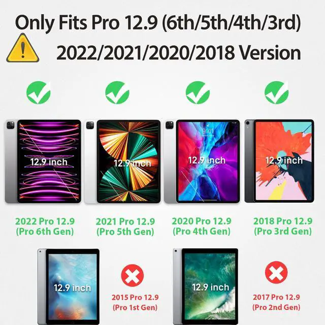 Compatible with iPad 12.9 Case Only fits 12.9 inch ipad pro case 2022/2021/2020/2018 released pro 6th/5th/4th/3rd generation, NOT old model. (Model Number - A2436, A2764, A2437, A2766, A2378, A2379, A2461, A2462, A2229, A2069, A2232, A2233, A1876, A2014, A1895, A1983). The Pencil is NOT included, you can find step by step install instruction video in our store.