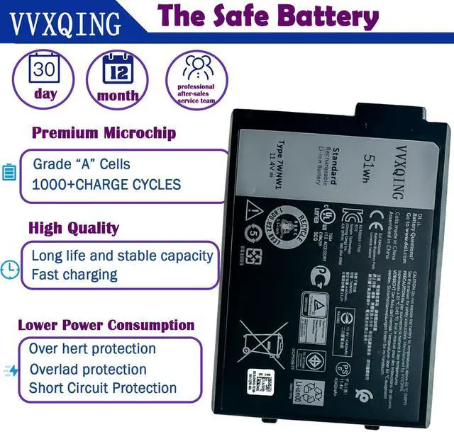 VVXQING 7WNW1 51Wh Laptop Battery Compatible with Dell Latitude 5424 5420 Rugged Extreme P85G P86G P137G P137G001 P137G002 P85G001 P86G001 Series DMF8C GK3D3 6NNCF DP3KF DMF0C 07WNW1 5560R-1326 51Wh