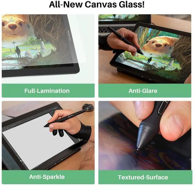 Upgraded Canvas Glass 2.0: This computer graphics tablet features an advanced nano-etched glass that evolves general anti-glare with anti-sparkle, which effectively reduces image noise under a white background. The graphic tablet with screen also provides a better paper texture to match full-lamination, enhancing clarity for better immersion during creation.