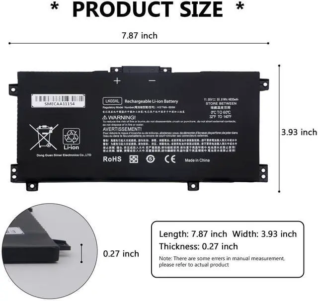 Specification: Voltage: 11.55V.Capacity: 41.9WH.Color: Black. Equipped with auxiliary installation tool including 2 screwdrivers and 2 plastic sheets,HTO3XL HP Laptop Battery for L11119-855 battery,Safe and efficient charging,it is convenient for users to assemble it by themselves.We support 12 months of warranty, and if you have any doubts, please contact us by email within 24*7 hours.
