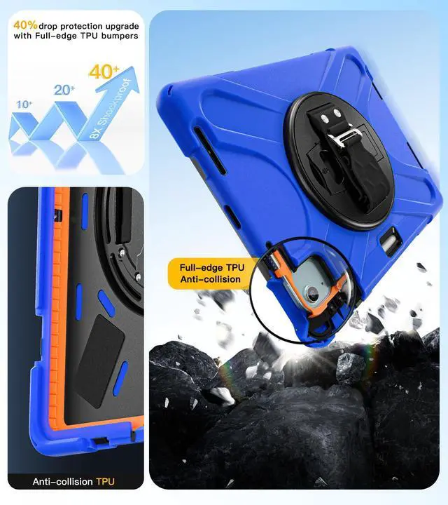 [Full Body Protection &Kids Friendly]:This case for ipad air 11 inch & iPad pro 11 inch features triple-layer construction and extra orange TPU cushioning strips, the outer silicone layer reinforces the dropproof performance of all four corners, plus there are 4x shockproof sponge pads on the bottom cover to prevent scratches to your tablet.Provides the ultimate in protection and durability, safe for kids to use.