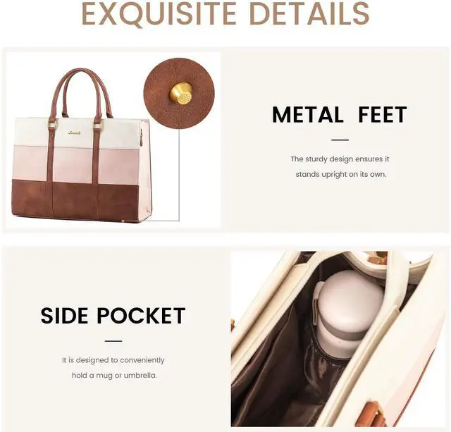 Waterproof & DurableCrafted from premium PU leather and high-density nylon lining, this laptop purse is scratch-resistant, waterproof, and easy to clean. Metal feet protect the bottom from wear, while a secure zip-top closure keeps your belongings safe