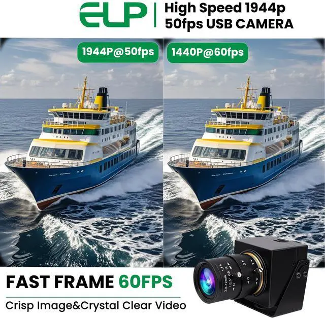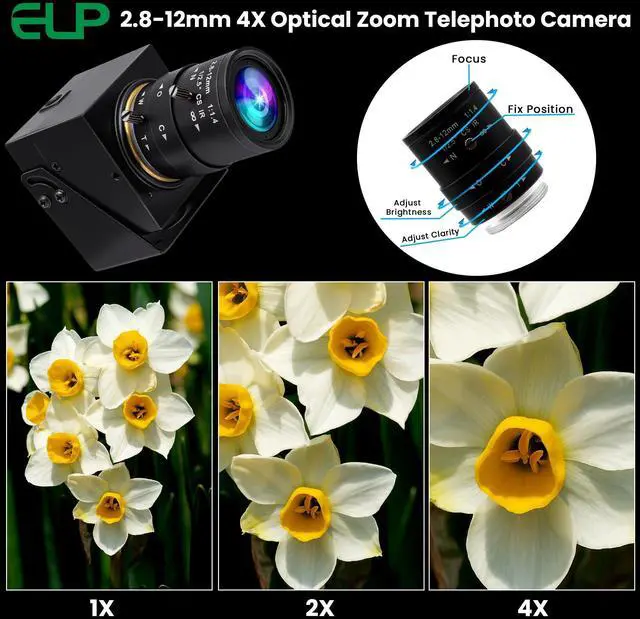 ELP Global Shutter USB Camera Manual Zoom Webcam 5mp 50fps High Speed PC Camera 2.8-12mm Variable Focus CS Mount Web Cam1440P 60fps Lightburn Cameras UVC USB2.0 Varifocal Telephoto Webcamera(4X Zoom)