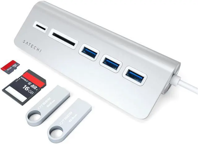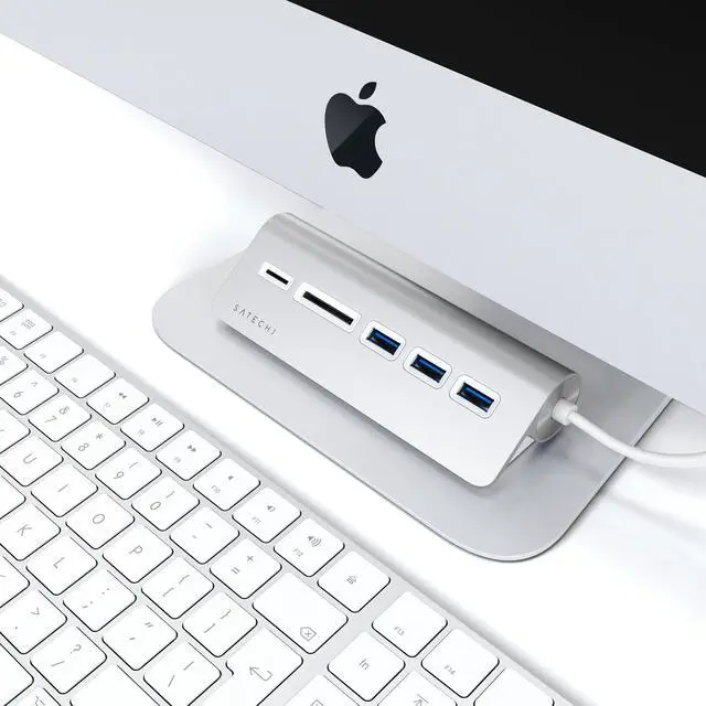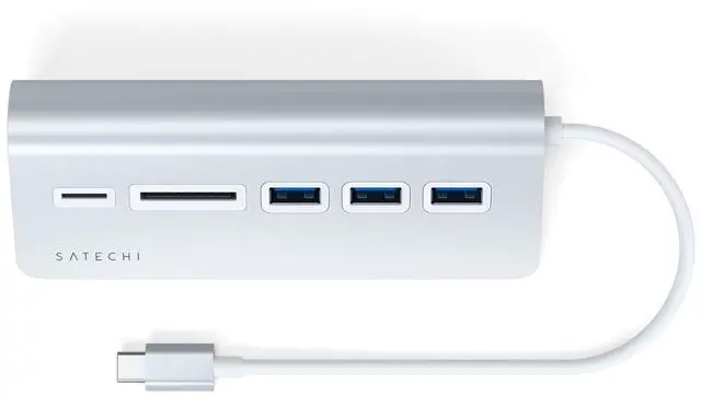 Satechi USB C Hub for Desktop, USB C Hub with 3 USB-A 3.0 Data Ports, Micro/SD Card Readers, USBC Hub for MacBook Air/Pro M5/M4, Dell, HP, Surface, Lenovo - Silver