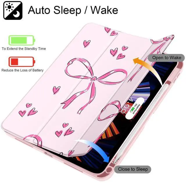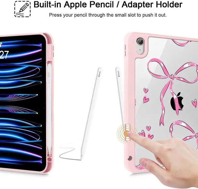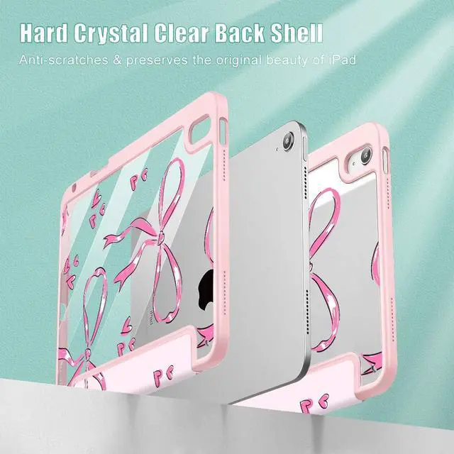 Mektron Case for 2025 iPad 11 inch (A16 Chip) 11th Gen Fit iPad 10th Gen 10.9 inch 2022, Buit in Pencil Holder with Shockproof Cover Clear Shell + Trifold Stand + Auto Wake/Sleep, Bows C360