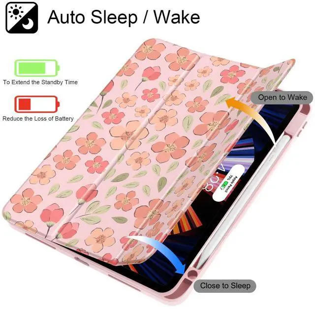 May Chen Case for iPad Pro 11-Inch M5/M4 2025/2024 (6th/5th Generation), Clear Transparent Print Back Shell Slim Stand Shockproof Tablet Cover, Auto Wake/Sleep, Pink Small Flowers