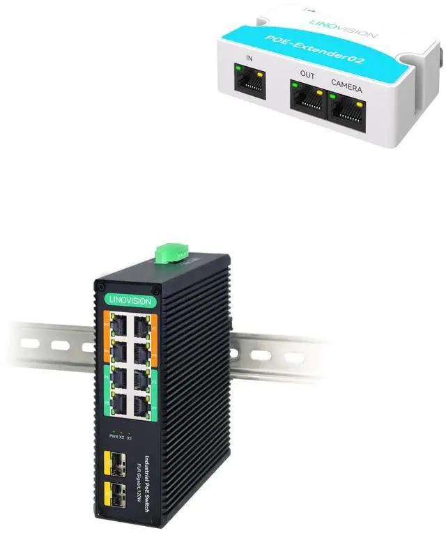 LINOVISION 2 Port POE Extender and Industrial 8-Port Full Gigabit BT 90W POE Switch, POE Splitter to 2 POE Devices Like IP Cameras, IP Phone, Wireless AP