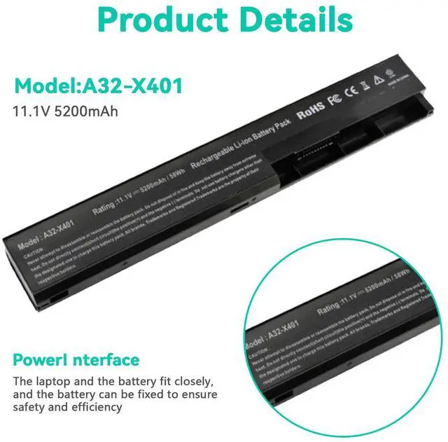 Battery type: Li-ion; Capacity: 5200mAh; Voltage: 11.1V; Cells: 6-cell. Recharge cycles:500; The battery is durable and has overcurrent protection, anti-overcharge, anti-overdischarge and temperature control functions.