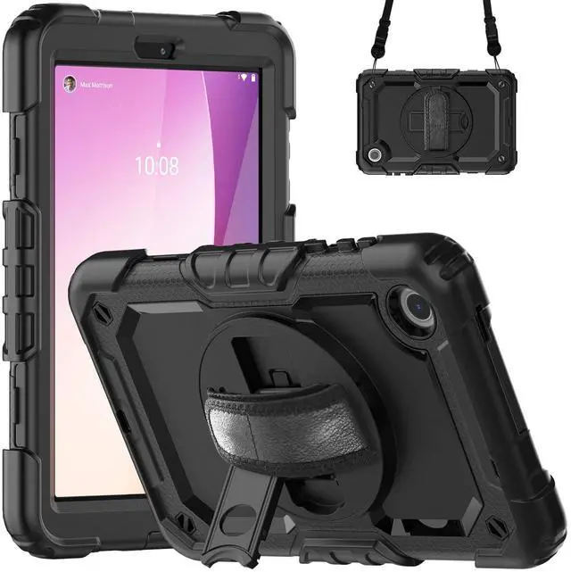Gylint for Lenovo Tab M8 Case 4th Gen 2023 (TB-300FU) Case, with Screen Protector, Hand Strap, Shoulder Strap, Rotating Stand for Lenovo M8 8.0 Inch 2023 Release Black