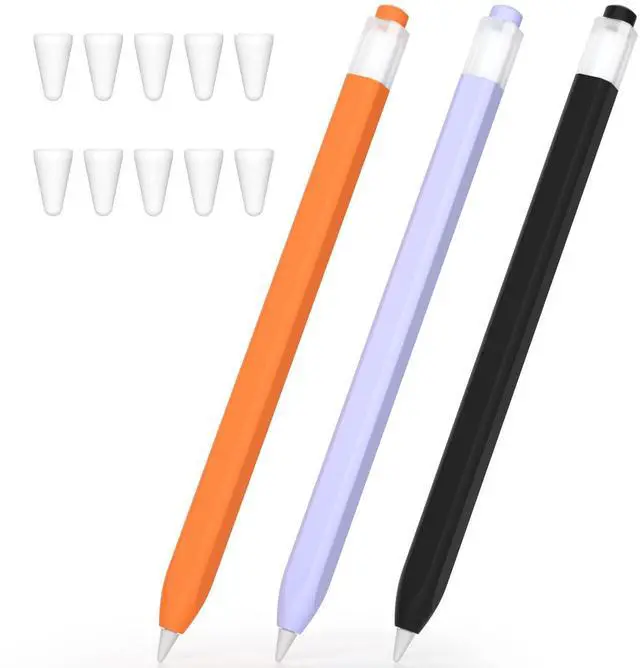 JOOSKO 3 Pack Compatible with Apple Pencil 1st Generation Case, Non-Slip Silicone Case, [with 10 Silicone Tip Cover] for Apple Pencil 1st Generation (Orange, Purple, Black)