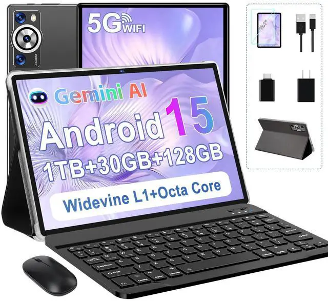 DEERTiME Android 15 Tablet 30GB RAM 128GB ROM 1TB TF, 2025 Electronics Tablets 10.1 Inch 8000mAh with Keyboard Mouse, 2.0GH z, 5G WiFi, BT 5.0, GMS Certified, Incell Display, Gemini AI - Metal Black