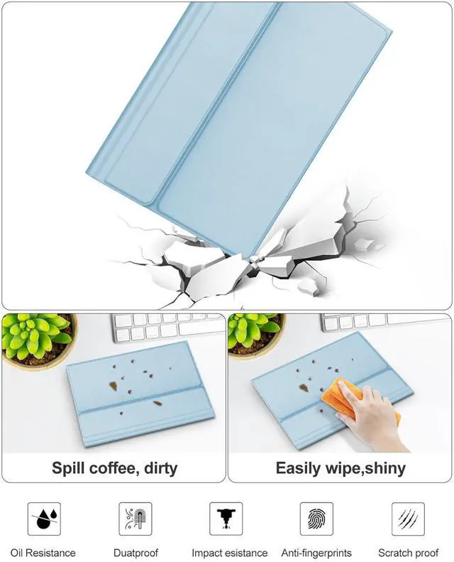 360 Protection for TabletFor samsung tablet keyboard case features a sturdy high-quality PU shell and soft anti slip rubber lining inside, providing comprehensive protection for your tablet.