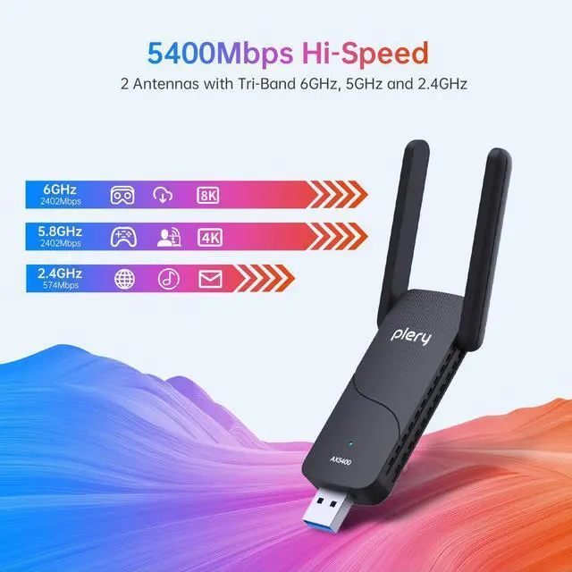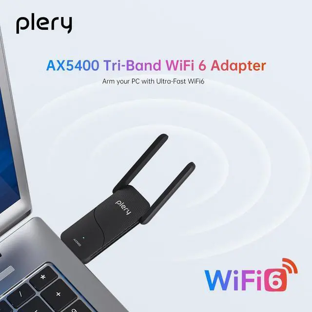 Ultra-Fast 5400Mbps WiFi 6 Adapter: PLERY wireless adapter eliminates lag and buffering, with 6GHz band for ultra-low latencygiving you the critical edge in competitive gaming. It also ensures flawlessly smooth 4K streaming and rapid file transfers. The professional solution to slow, congested WiFi