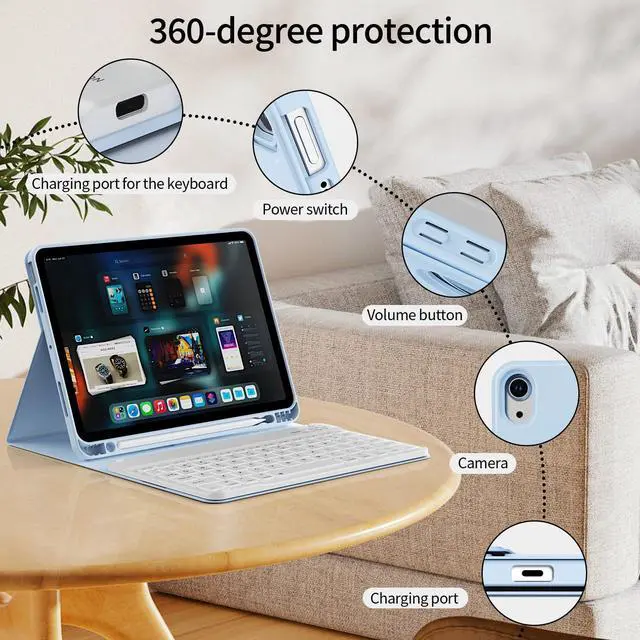 Magnetic Detachable Keyboard: This iPad Air 11-inch case features a magnetic keyboard that can be used independently and easily detached from the case. convert to laptop mode when not in use for convenient portability. The iPad Air M3 case keyboard achieves precise alignment through its magnetic design, effectively preventing accidental detachment. This iPad Air 11 inch keyboard case incorporates industry-leading keyboard design with wider scissor-switch keys for a comfortable typing experience.
